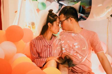 圆脸新娘在化妆时又是采用的什么办法呢?其实圆脸给人的感觉特别青春,如果本身又比较瘦,在化妆上其实也不用怎么担心了。不过,有的女生会担心自己拍出来的照片太胖。这种情况下,婚纱摄影工作人员会通过调整眉峰和眉尾来进行改善。比如说眉峰应该带出来一定的弧度,而眉尾的部分也应该尽量高过眉头,这样就不会显得脸特别圆。从发型上来看,婚纱摄影工作室一般都是将头发盘起来,梳成丸子头以后会看起来脸型长很多,这样也能让新人看起来特别有气质。各种脸型的妆容也都可以由婚纱摄影工作人员搞定。