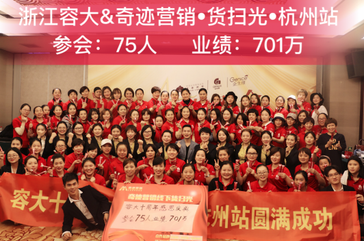 浙江容大携手奇迹营销杭州站“货扫光”线下会议,75人参会,业绩达到701万!