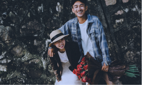 拍外景婚纱照就是“人物表现”与“主题场景”的风格要主动融合。最怕的是棚内矫情做作的造型,生硬地应用在外景婚纱摄影中。新人拍摄外景婚纱照时候的造型表现,最好能与大自然融合为一,自然、生动、有生命力,擅于捕捉瞬间才是外景拍摄外景婚纱照的最高境界,更是新人与专业摄影师之间的完美配合。