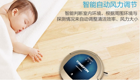 5、噪音。斐纳TOMEFON扫地机器人具有智能风力调节系统,能够根据室内环境智能判断来调节清洁的效率和风力,避免出现因工作噪音大而影响家庭中正在休息的人员。
