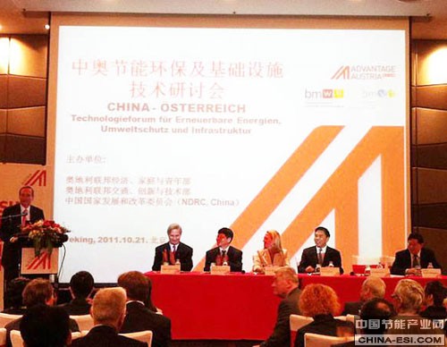 为加快推进中奥节能环保领域的技术交流与务实合作,2011年10月21日上午,中国国家发展和改革委员会、奥地利联邦经济、家庭与青年部在北京共同主办了中奥节能环保技术研讨会。国家发展改革委环资司赵鹏高副巡视员和奥地利联邦经济部迪尔司长共同主持会议。奥方介绍了节能环保新理念,与中方探讨了有关技术问题,并共同参加了中奥节能环保及基础设施技术研讨会闭幕式,中奥双方共80余人参会。