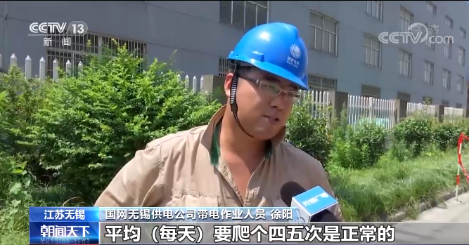 陕西电网也是9次刷新夏季最大负荷纪录,同比去年夏天增长19.9%。预计未来一段时间,多座变电站可能会出现负荷重载或过载,目前国网陕西电力正在加强设备运维,保障重载、满载设备安全稳定运行,满足高峰负荷时段用电需求。江苏日用电负荷突破1.2亿千瓦,同比增长4.6%。南京、苏州、无锡、扬州等市用电负荷创新高。不少城市的电力工人,冒着三十八九度的高温,穿着密不透风的屏蔽服,带电抢修线路,三个小时下来,几乎人都湿透了。国网无锡供电公司带电作业人员 徐阳:基本上,我们班组平均(每天)要爬个四五次是正常的,要保证我们后面居民的用电。不然的话,老百姓(在)炎热的夏天,他们也不舒服。