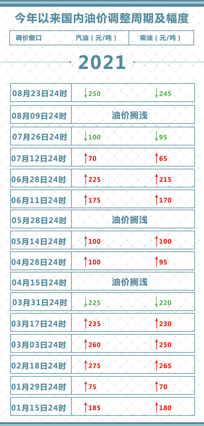 央视财经记者从国家发改委获悉,本次油价调整具体情况如下:汽油每吨下调250元,柴油每吨下调245元。