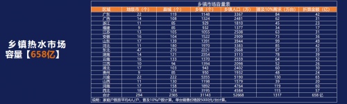然而这并不意味着农村空气源热泵前景渺茫,相反,农村空气源热泵市场蕴藏着千亿商机!据不完全统计,我国北方和南方分别拥有121、294个地级市,1001、2365个县城,11867和31143个乡镇,以5%~10%的富裕户和新装修户计算,每镇约1000户,每村约50~60户,家庭户数按平均4人/户,普及10%户数计算,采暖机平均每户按25000元/台计算,北方乡镇户式采暖市场容量为1300亿元;热水机平均每户按5000元/台计算,乡镇热水市场容量为658亿。综上所述,在农村地区,仅家用采暖和热水市场规模可达1958亿元。