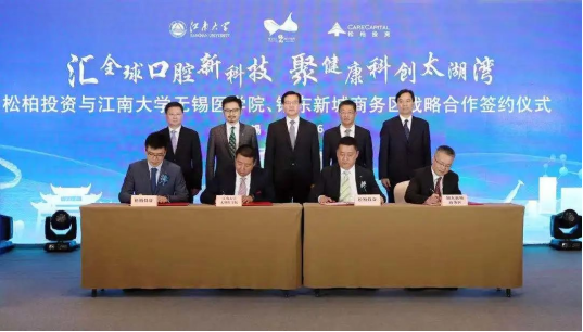今年6月16日,在中国工程院院士、江南大学校长陈卫,松柏投资董事长冯岱,锡山区委书记周文栋共同见证下,松柏投资与江南大学无锡医学院、无锡锡东新城商务区签约,表态各方携手共同推进江南大学口腔医学专业建设、口腔医疗服务扩容和医疗器械专业园区建设,汇聚全球口腔新科技,携手打造健康科创太湖湾。同时,此次战略合作将推动无锡口腔医疗与口腔教育同步发展,加速技术成果转化,打造高等院校、科技企业、产业投资机构深度参与太湖湾科创带建设的样板,促进无锡市高等教育和产业高质量发展。