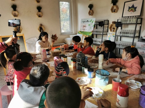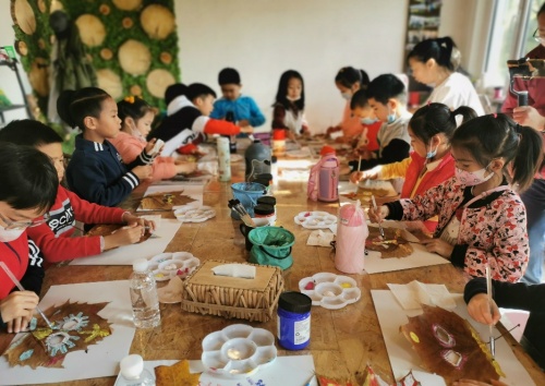 11月13日上午,在青岛市互联网+全民义务植树第一绿色驿站里,市实验小学一年级四班的同学们走进“落叶魔法师学院”,在青岛知名文创师-刘萍老师的带领下进行了一场落叶上的“假面舞会”。他们化腐朽为神奇,用落叶画的形式温暖地拥抱初冬。