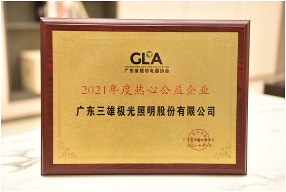 会上,主办方对2021年在社会公益、行业发展等领域做出积极贡献的优秀照明企业进行了颁奖表彰,三雄极光荣获“照明行业商标30强”、“广东省照明行业重点商标培育示范企业”、“热心公益企业”三项殊荣。