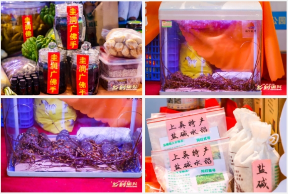 活动当晚的上海外滩霓虹闪烁、音乐欢快。会场内,各条景观示范带的特色产品悉数登场,每个展台的特产琳琅满目,推介官盛装出席,热情带货,吸引嘉宾围观品尝。
