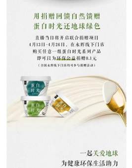 为了让“支持纯净地球”的理念影响更多人,一起构建“零碳未来”,畅轻蛋白时光在上市之初就拓展了一系列有趣、可参与的活动:和渠道合作,用环境友好帆布包替代塑料购物袋;将酸奶杯重复利用做多肉盆栽;号召消费者一起为公益环保捐赠等。
