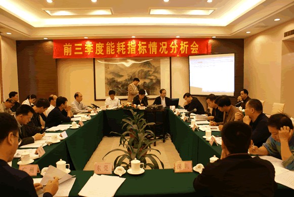 2007年11月5日,省经贸委环资处在广东迎宾馆组织召开了我省前三季度能耗指标情况分析会。省经贸委、省统计局、省节能中心、全省21个地级市经贸部门的有关领导和代表参加了会议。会议通报并分析了全省及各市前三季度的能耗情况、能耗指标变化原因,研究分析了节能工作当前面临的形势和存在问题,并提出了相应的对策与建议。省经贸委环资处就近期的节能重点工作进行了布置。