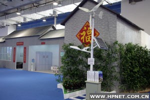 在科技展区的一个路灯旁边,吸引了许多观众。农业部科技发展中心李景明高级工程师正指着这个路灯对观众说:“这是一个风光互补路灯,集太阳能和风能利用于一体,既利用了太阳能和风能的优点,又克服了它们的缺点。这项技术还可以用在电网覆