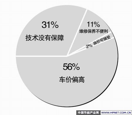 虽然日前国家明确表示中央财政重点对试点城市购置混合动力汽车、纯电动汽车和燃料电池等新能源汽车给予一次性定额补助,乘用车和轻型商用车根据节油率和技术不同可以获得4000元至25万元不等的补贴,长10米以上城市公交客车可以获得5万元至60万元的补贴,但是业内人士认为,此次购买新能源车的补助并不对个人消费者给予直接补贴,《通知》没有明确像减免购置税这样的政策来鼓励个人消费者购买新能源车,不能不说是一大遗憾。在消费者不购买新能源车的原因中,有56%的人认为车的价格偏高,31%的消费者认为技术没有保障,还有11%和2%的被调查者分别表示维修保养不便利和目前油价可以接受。