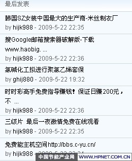 笔者前往长沙市开设的节能诊断论坛(//www.energy120.com/)了解情况,结果发现论坛中大部分内容都是与节能不相关的信息,并没有发现有专家的影子,不知道是管理员管理不善还是有人恶意发布大量广告信息,希望长沙市此次节能120服务主办方能真正落到实处,将好事做到底,为耗能企业创造一个良好的交流平台。