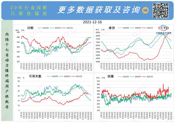 煤炭供应高位维稳。根据CCTD中国煤炭市场网监测的数据显示,12月16日当周,鄂尔多斯日均产量268万吨/日,周环比持平。