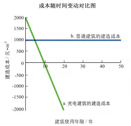 建筑与光伏深度融合的BIPV,在成本上必然受益于光伏发电技术的成熟的和其经济性。中国建筑技术集团高级工程师王志东在分享中指出,光电建筑虽然初始投资成本看似较高,但成本是动态变化的,随时间延续,初始成本依赖发电收入会呈现持续走低的态势,甚至在全寿命周期内出现零甚至为负,也就是成本归零并实现盈收,而普通建筑只能靠折旧回收成本,因此光电建筑成本最低。