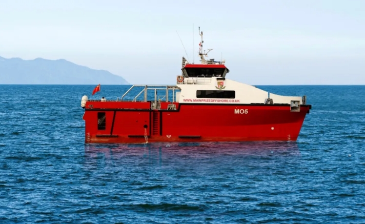 “MO5”是一艘近海航区风电运维船,船长25.43米,宽11米,满载吃水达3米,可装载6名船员并运送24名工程技术人员,甲板载货量达到50吨,试航航速达25节。相比传统的风电运维船,有着更显著的高海况适航性、安全性、承载能力和效率,还具备淡水运输功能。