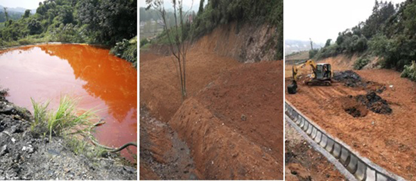 益阳鑫盛矿业有限公司赫山区石笋石煤矿2018年1月正式停产关闭。督察发现,该矿山开采区域形成面积约2万平方米的露天矿坑,坑内积存大量酸性锈红色废水。当地仅采取向矿坑废水灌入石灰浆液的方法,对水中重金属进行沉淀处理,但产生的沉淀物仍然沉积水底,起不到实际效果。