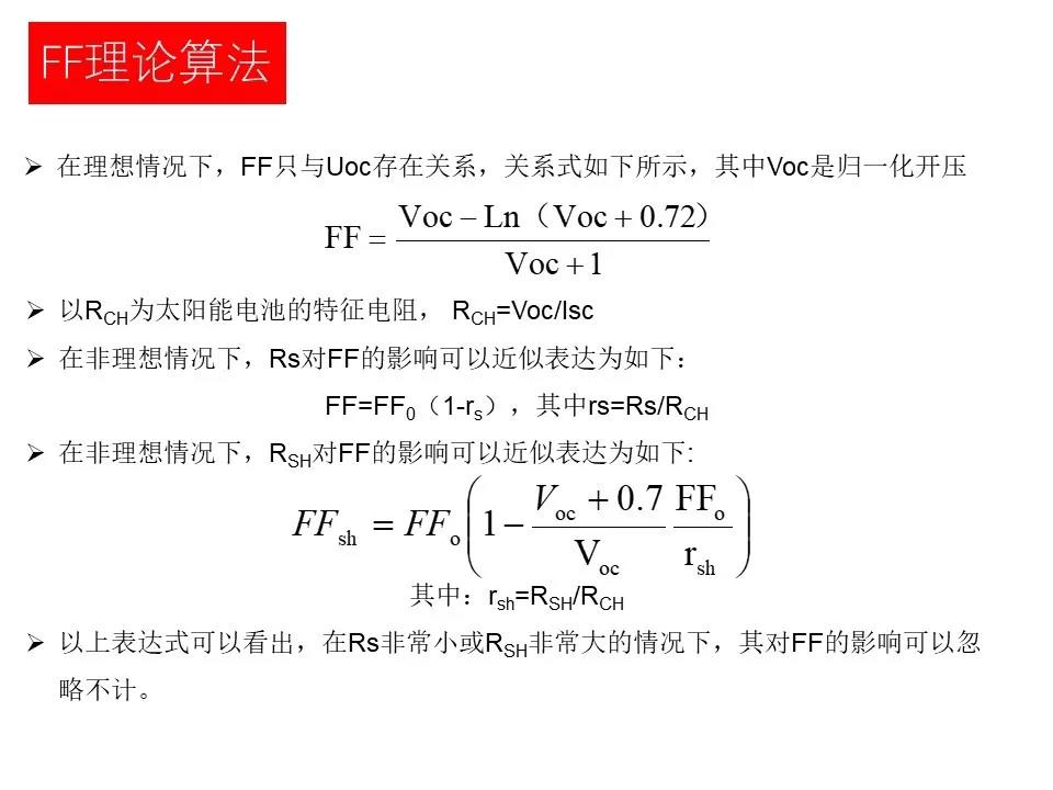 以最大功率点在I-V曲线上的形成的矩形面积除以Uoc与Isc形成的面积作为FF,即填充因子。