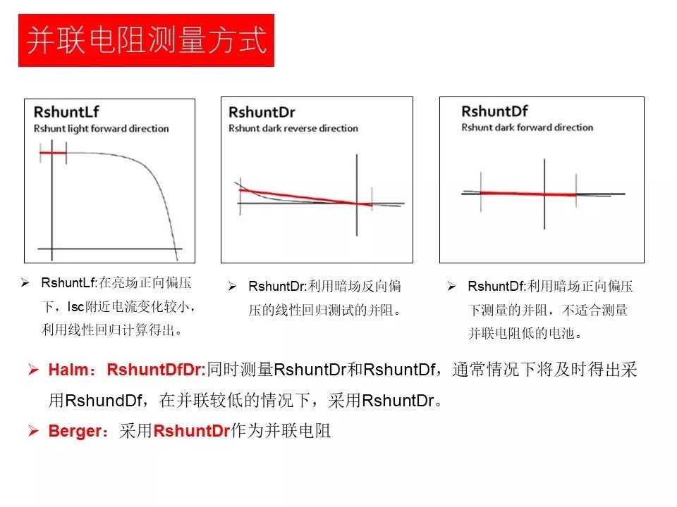 作为半导体器件,其在Isc附近的曲线符合电流源特性,在Voc附近的曲线符合电压源特性,因此以Isc附近曲线斜率倒数作为并联电阻Rsh,以Uoc附近曲线斜率倒数作为串联电阻Rs。