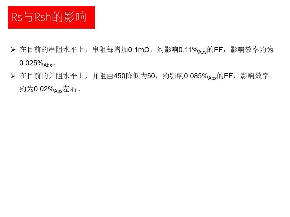从图中可见,Isc附近曲线斜率与Uoc附近曲线斜率对FF影响极大,即FF大小受制于Rs与Rsh。